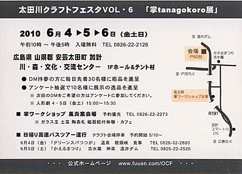 - 2010 6/4〜6/6 安芸大田町加計 川・森・文化・交流センター 太田川クラフトフェスタVol.6